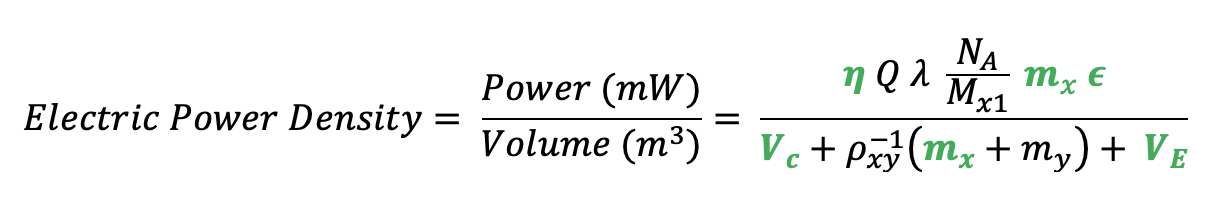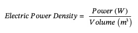 Electric power density (volume) measures how much power can be generated per unit of volume. This is important when available space is limited, such as sealed systems or compact payloads.