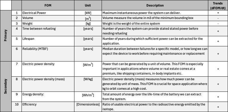 Together, these FOM targets align with the organization’s strategic drivers of high-endurance, safe, and sustainable energy technologies, positioning it for leadership in ultra-long-life power applications such as remote sensing, space systems, and autonomous infrastructure.
