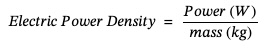 Electric power density (mass) measures how much power can be generated per unit of mass.