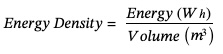 Energy density is the total amount of electrical energy produced by the system over its operational life per unit of volume.