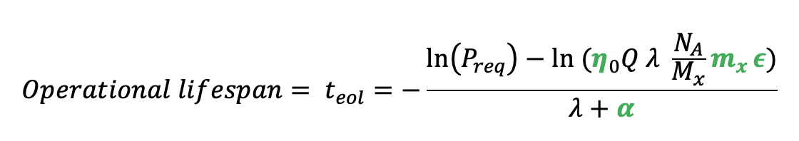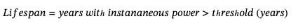 Lifespan measures the number of years during which the system delivers sufficient power above the operational threshold.