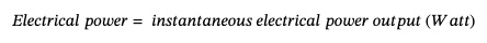 Electrical power is the instantaneous output available from the system.