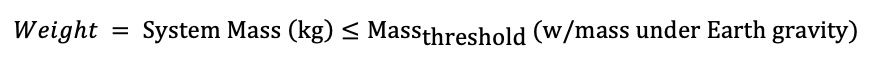 Weight is the total system mass.