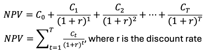 The governing equations for NPV are shown below.
