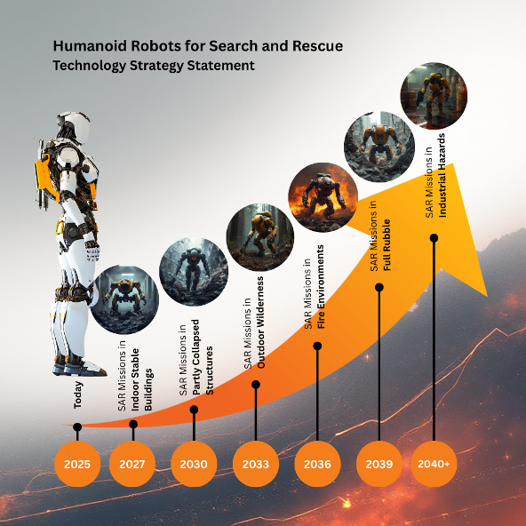 Overall, this roadmap positions humanoid systems not as general-purpose platforms, but as specialized, safety-critical tools designed for extreme environments. The trajectory reflects both the constraints of SAR missions and the technical dependencies, establishing a coherent path from current research capabilities to real-world deployment.