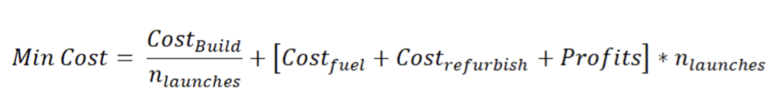 A theoretical limit to launch costs exists, and while debated consists of the cost to initially build the rocket divided by number of launches, plus cost to refurbish per launch, and the cost of fuel per launch. There is also a corporate profit margin that must be included since companies like SpaceX and Blue Origin are for profit. This reasoning can be represented by Equation 1 below: