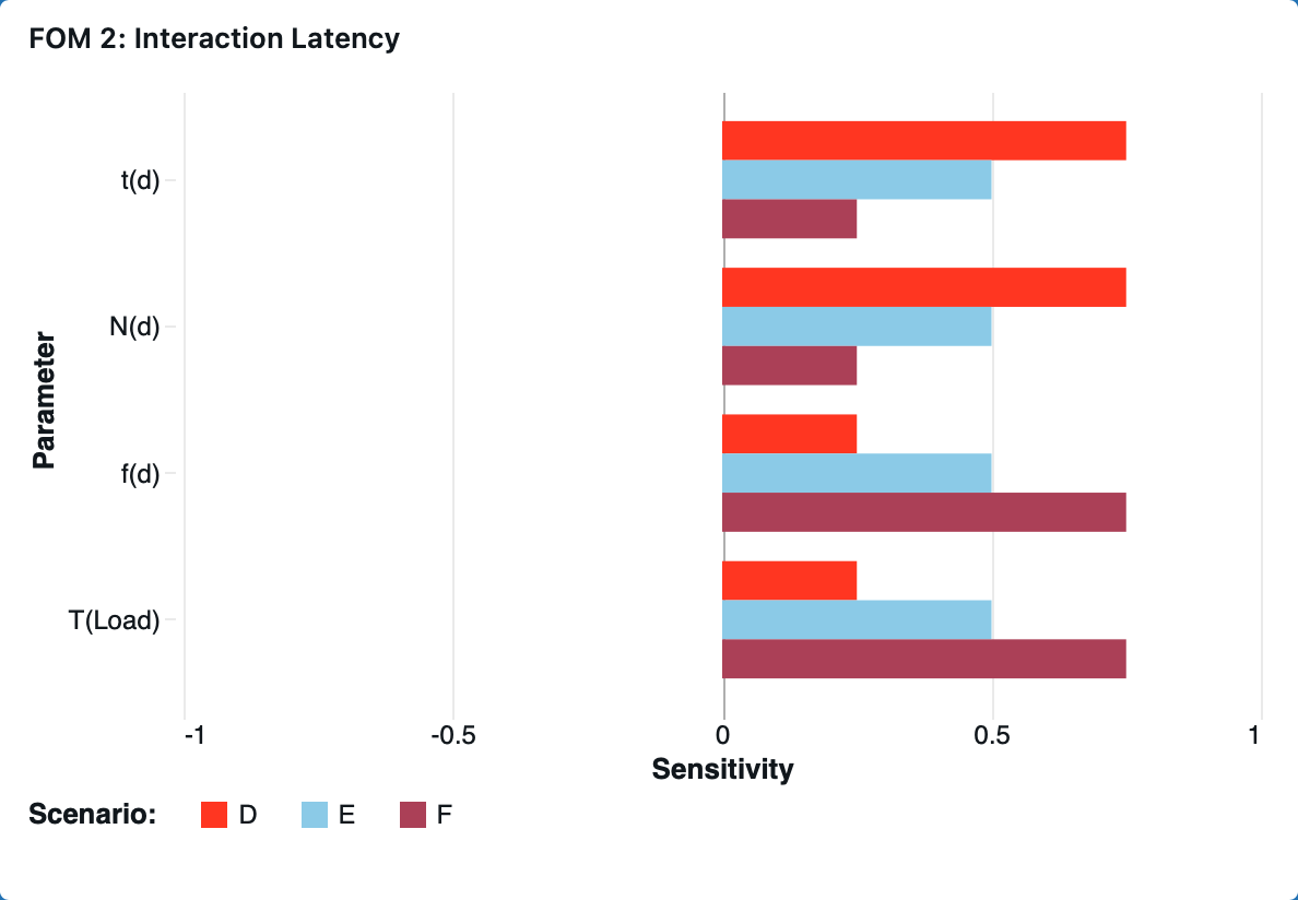When interpretation dominates, T(Interp) ≫ T(Reload), interaction latency becomes highly sensitive to interpretation-side parameters such as per-dataset interpretation time, t(d), and number of datasets affected (Nd). Conversely, when reload dominates, T(Reload) ≫ T(Interp), the system becomes more sensitive to reload-side parameters such as reload fraction, f(d) and end-to-end load time T(Load).