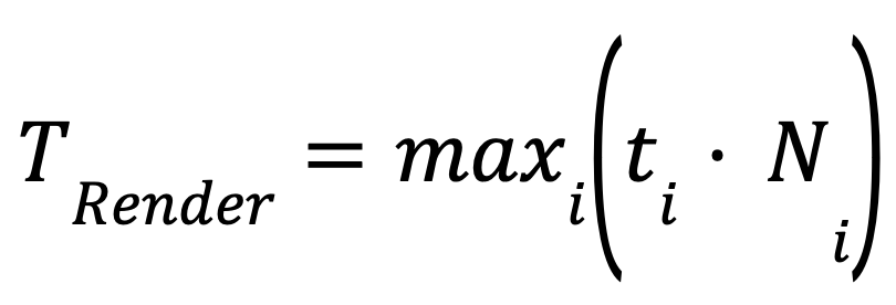 Note: this equation captures differences in rendering complexity across mark types. For instance, dense scatter plots or layered charts typically incur higher per-mark render times compared to simpler bar or text-based marks. We assume rendering occurs concurrently across mark types but sequentially within (i.e., per mark), which is a simplification of real-world parallel-rendering behavior to keep the model tractable.