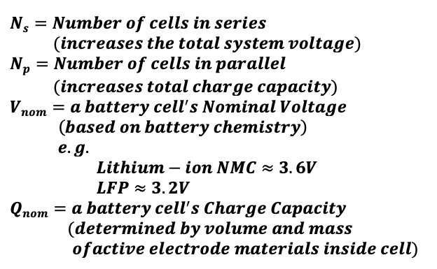 | Energy Capacity The capacity is based on battery arrangement (series and/or parallel) and total voltage and charge potential |