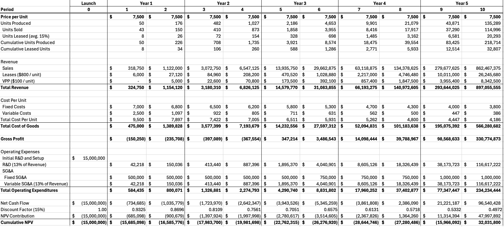 For the technical model, because this is a consumer product which must produce and ultimately sell units, we develop a utility-based model based on customer value.