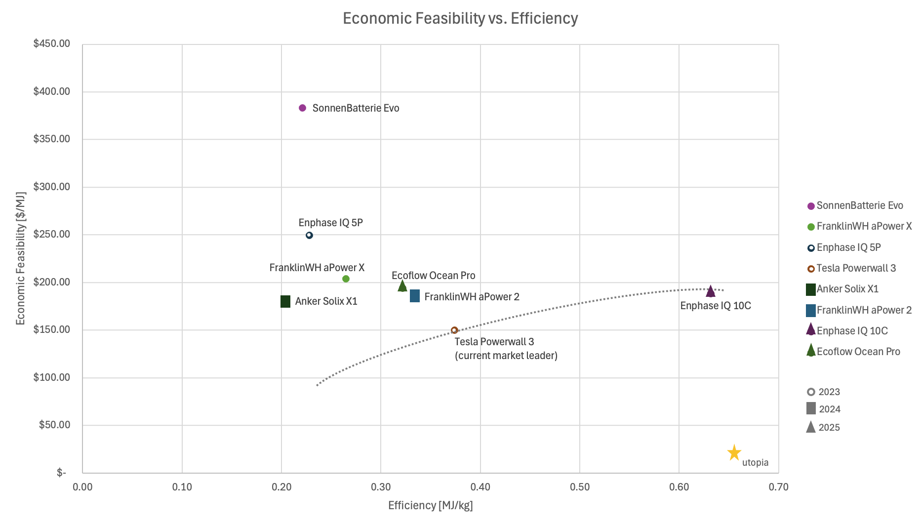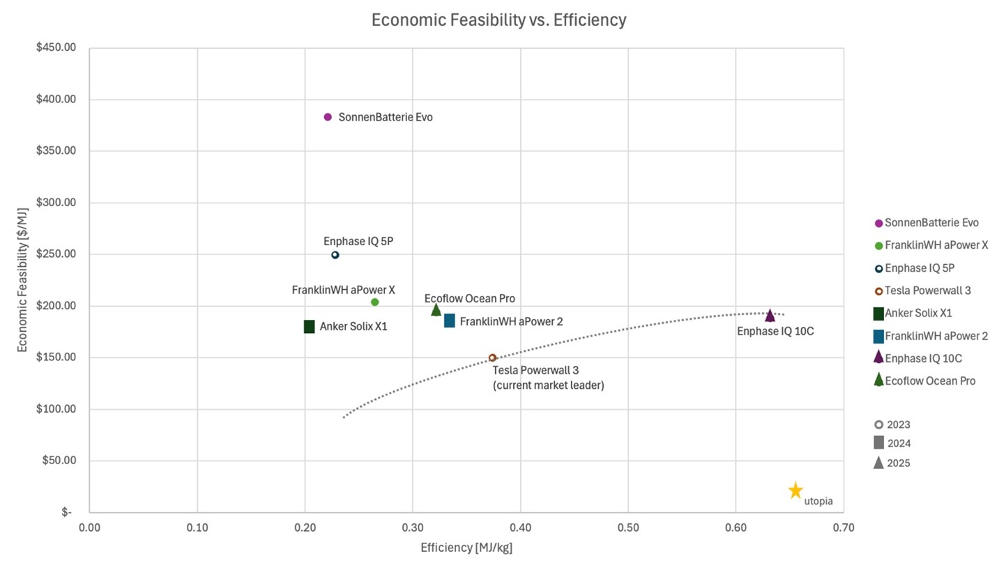 This section analyzes the current competitive landscape for Residential Battery Energy Storage Systems (RBESS) to validate the strategic FOM targets defined earlier in the roadmap. The analysis benchmarks current commercial products to identify market positioning, performance gaps, and prevalent technical trade-offs.