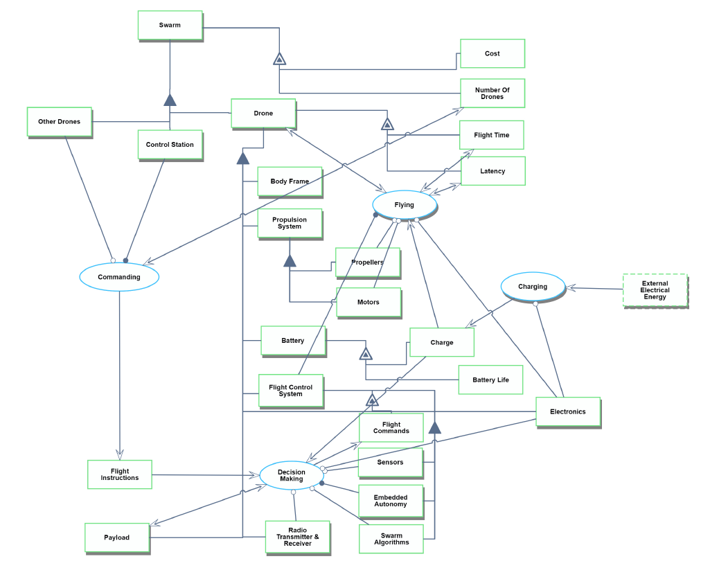 The high levels of inter-dependencies show that while individual technologies can improve certain operating characteristics of a single drone, multiple technologies need to advance together to realize the full benefits of autonomous drone swarms. For example, better batteries, more efficient motors and advanced autonomy software can significantly improve the flight time FOM.