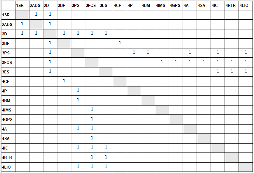Autonomous Drone Swarms can be broken down into the following technologies that have some inter-dependencies. Autonomous Drone Swarms at the product level relies heavily on the product roadmap of drone technology since 2ADS is a composition of multiple units of 2D. 3FCS has many inter-dependencies with 3ES since the flight control system needs the components in the electrical system.