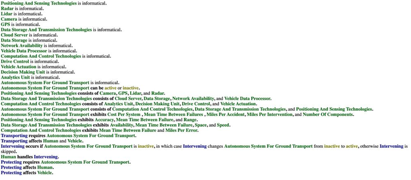 An Object-Process-Language (OPL) description of the roadmap scope is auto-generated and given below. It reflects the same content as the previous figure, but in a formal natural language.