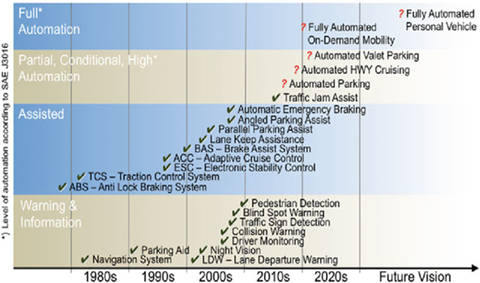 Within the automobile industry, functions pertaining to autonomous driving have been gradually implemented onto the high end vehicles, as shown in the exhibit below on the left, whose customers are able and willing to pay a premium for these advanced yet developing features. It is a trend that autonomous system would be permeating into a wider range of automobiles especially in trucks, buses, as well as the middle to low end passenger vehicles.