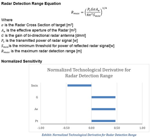 The analytical expression for radar detection range and normalized technological sensitivity is as shown