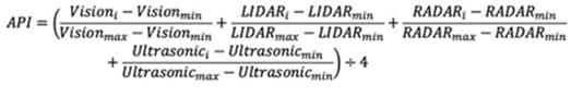 The architectural performance index approach was adopted to quantify the perception system performance of the autonomous system for ground transport as given below