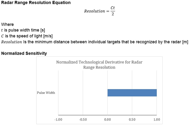 The analytical expression for radar resolution and normalized technological sensitivity is as shown