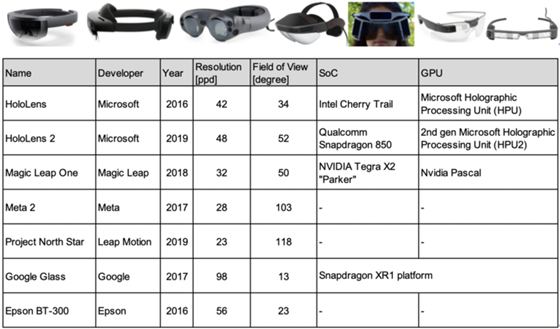 The figure below shows a summary of the holographic AR device, Head-mounted displays and smart glass, that are intended for performing AR applications from public data.