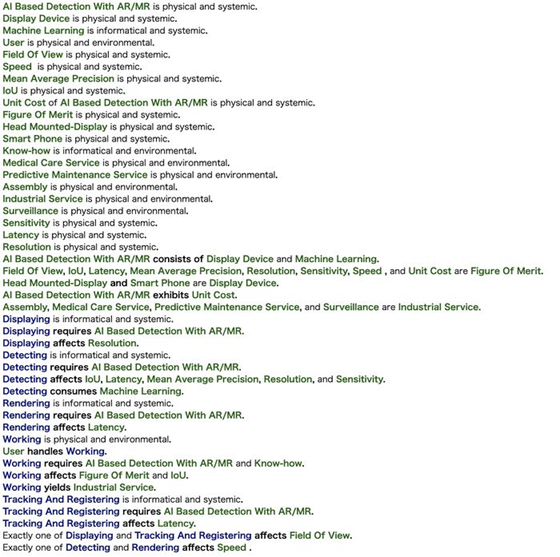 An Object-Process-Language (OPL) description of the roadmap scope is auto-generated and given below. It reflects the same content as the previous figure, but in a formal natural language.