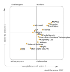The above left is the the Magic Quadrants for Endpoint Protection Platforms in 2007. The right is the Magic Quadrant for endpoint protection platforms as of October 2022. The Magic Quadrant shows 18 providers placed in either the Leaders, Challengers, Visionaries or Niche Players. Providers are positioned based on ability to execute and completeness of vision.