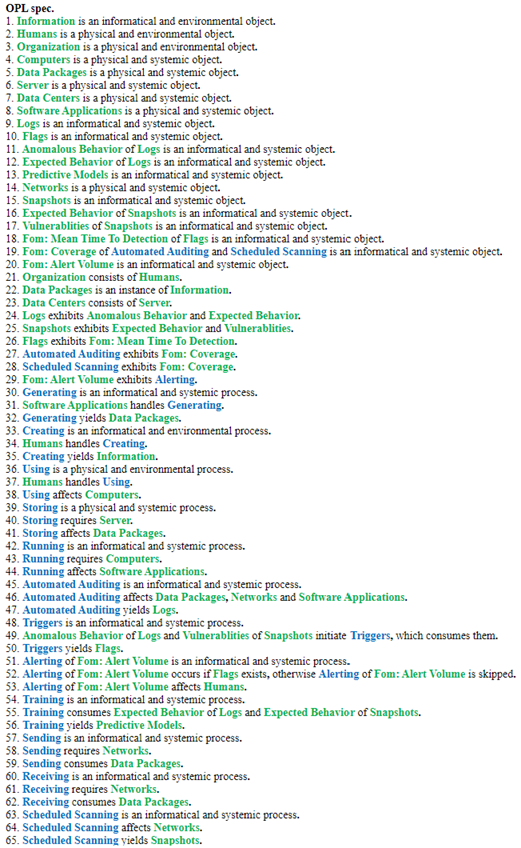 The Object-Process Model above can be written in natural language as follows: