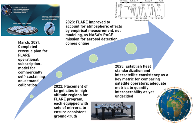 This technology roadmap is a hybrid level-2 assessment of earth observation satellites (EOS) and level-3 assessment of Labsphere Inc.'s technology for radiometric and spatial calibration, with an emphasis on their FLARE project. Earth observation satellites are one of the latest applications of remote sensing.
