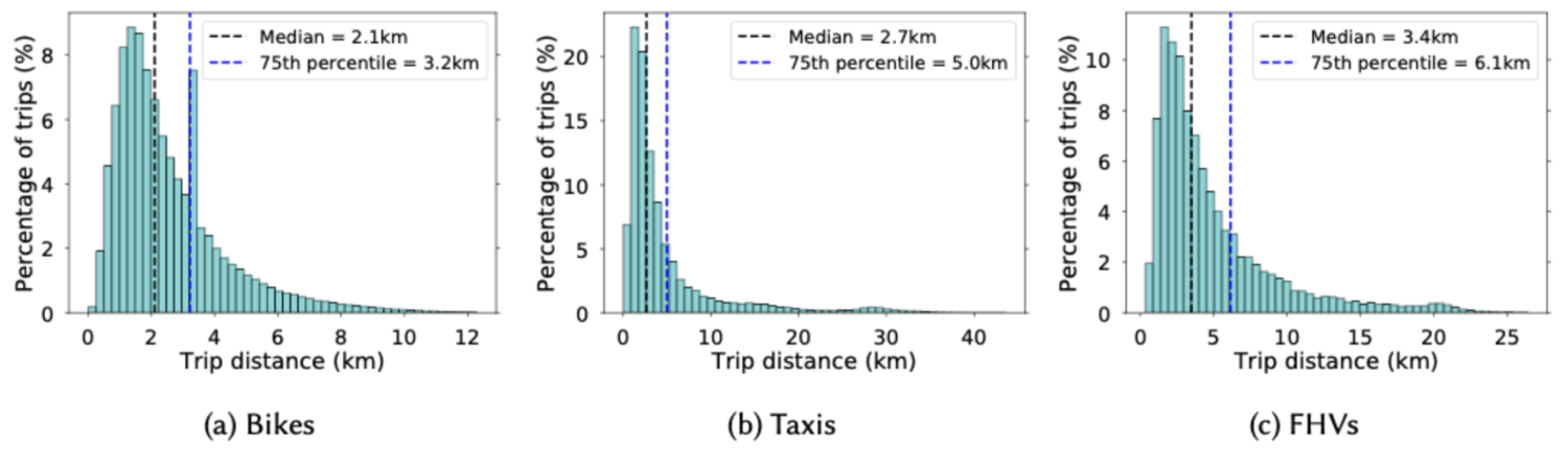 For publications, it was valuable to dive deep into the core of micromobility and the drivers behind more short-term transport. For example, the trip distance metrics and feasibility analysis of computed distributions of trip distances for bike, taxi, and FHV car-sharing datasets should be reviewed. It was valuable to understand some key needs and areas of competition necessary for future improvements in the roadmap.