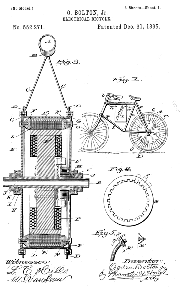 | Electric Patents | 1895 | First e-bike patent (Bolton) | DC motor, lead-acid batteries |