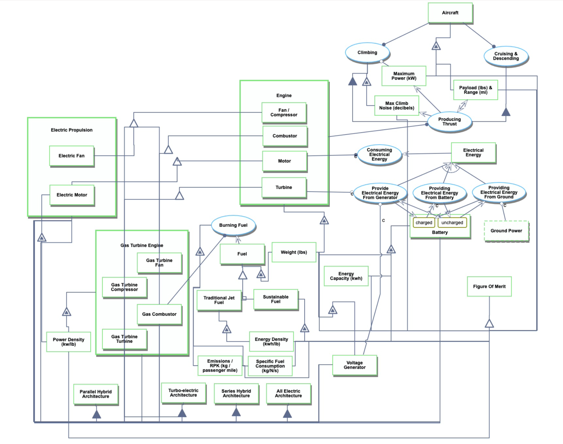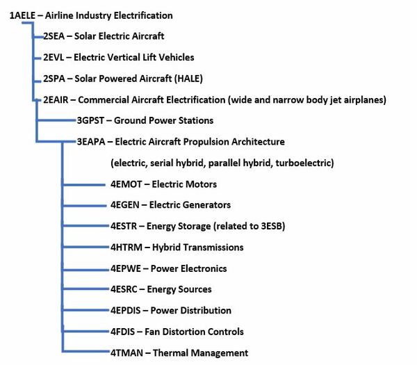 This indicates that we are dealing with a “level 3” roadmap at the subsystem level, where "level 1" would indicate a market level roadmap (airline industry), “level 2” would indicate a product level roadmap (aircraft) and “level 4” would indicate an individual technology roadmap (propulsion subsystem components). We are considering this roadmap of propulsion architectures as "level 3" because it is being developed specifically for commercial aircraft applications (only one relevant "level 2" roadmap).