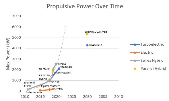 Modern aircraft burn hydrocarbon fuels to create thrust, but electric power from renewable sources is an opportunity to reduce operating cost & emissions. Electric propulsion requires extremely dense (by weight) energy storage and motor power, which is not yet sufficient for commercial aircraft travel. To utilize electric power in the meantime, hybrid architectures utilize electric motors either alongside gas turbine engines (Parallel Hybrid), or to apply the power of a gas turbine engine to create thrust (Turbo & Series).