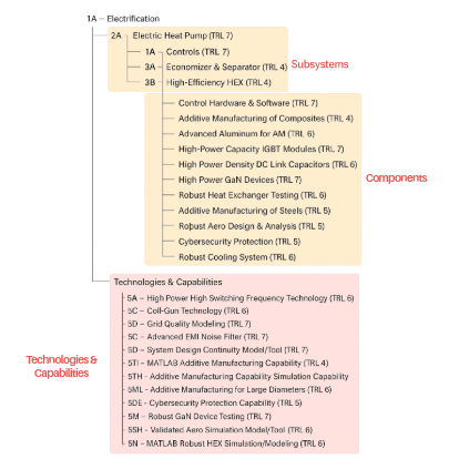 This dependency matrix delineates the intricate network of technologies and capabilities required for the development of an electric heat pump system. By examining the interrelations from the perspective of Technology Readiness Level (TRL), we gain insight into the maturity and associated risks of each element.