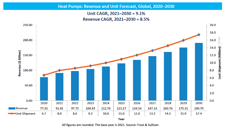 The consistent growth trajectory in the heat pump market could be attributed to various factors such as the global push for energy-efficient heating solutions, the rise in environmental awareness, and government incentives for green energy technologies. The data implies a robust market outlook for heat pumps, highlighting the sector's potential for innovation and expansion in the coming decade.