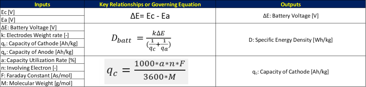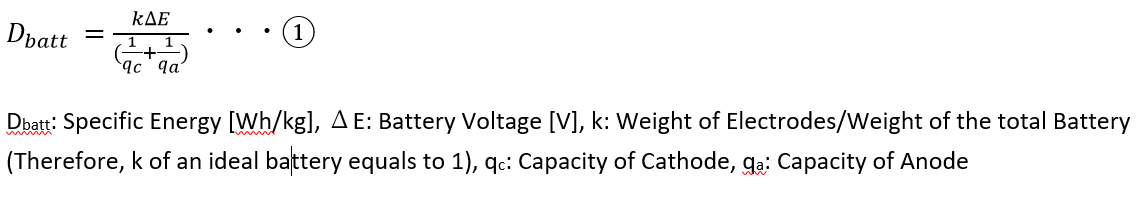 As a second step, let us show the equation which shows one of our important FOMs, Specific Density [Wh/kg]. This FOM can be calculated with an equation as below:
