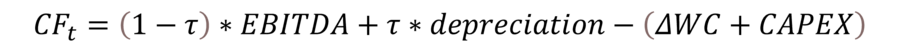 The cash flow for each year up was calculated by the following formula.