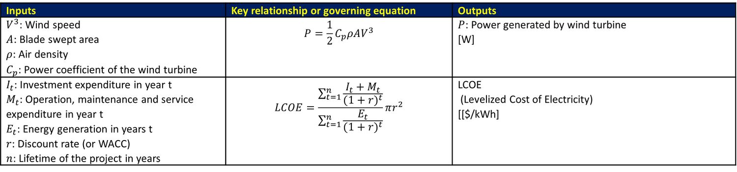 The table below shows an example of a key governing equation governing wind turbine generators.