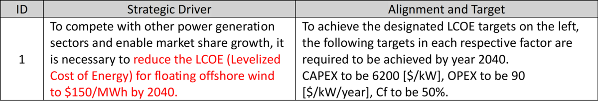 Our company’s R&D targets are aligned with our mission to develop low-cost, efficient, floating offshore wind turbines that will be competitive by 2030. To achieve our strategic objective of reducing LCOE to 150 $/Kwh, we will invest in R&D and focus on the key drivers of the LCOE (CAPEX, OPEX) to drive the FOM in the right direction.