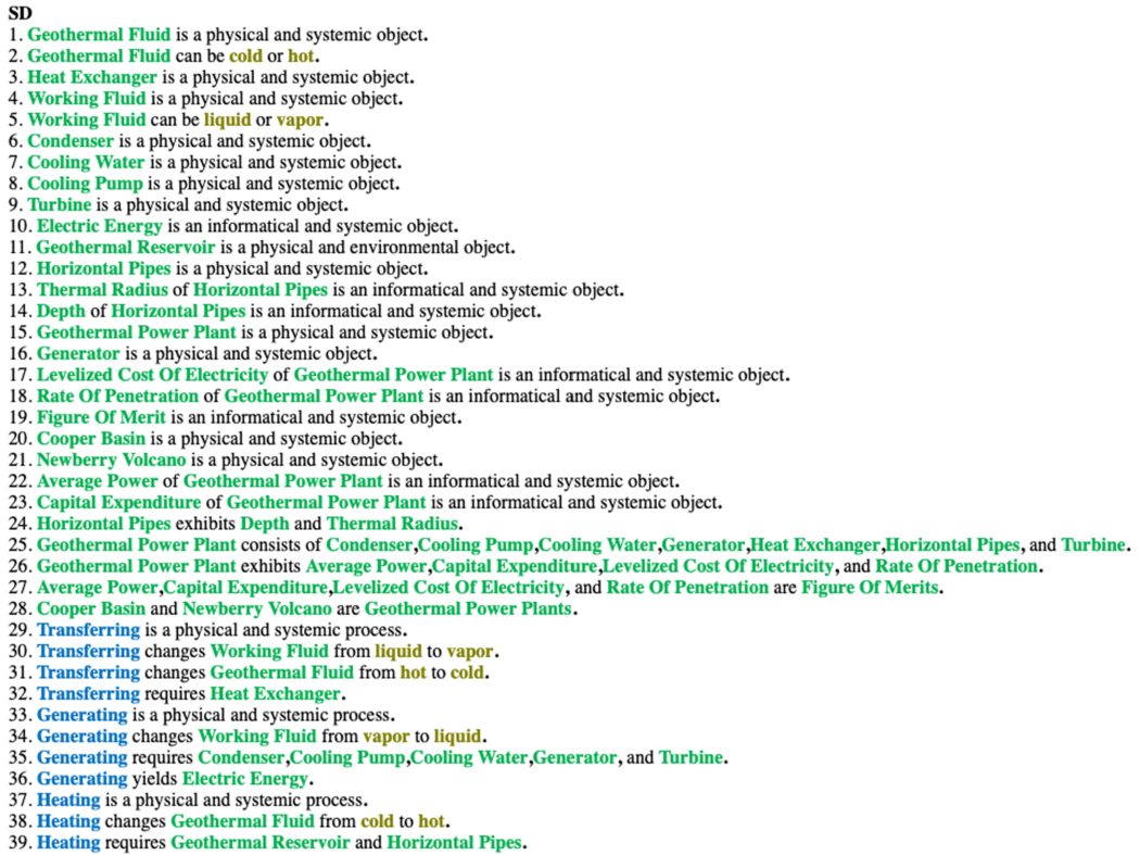 This Object-Process Methodology (OPM) diagram outlines the key components of a geothermal power plant and the processes involved in converting geothermal heat into electricity.