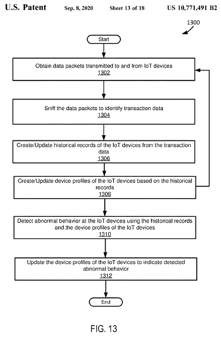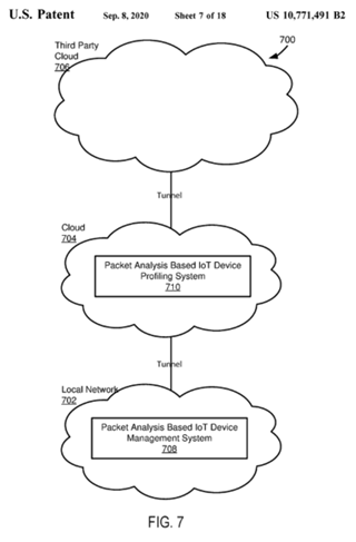 1. Packet analysis based IoT management <ref>Cheng, Gong, Pui-Chuen Yip, Zhiwei Xiao, Ran Xia, and Mei Wang. Packet analysis based IoT management. United States Patent US10771491B2, filed February 19, 2019, and issued September 8, 2020. https://patents.google.com/patent/US10771491B2/en?oq=US10771491B2</ref>