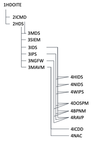 The Healthcare Data Security (2HDS) tree that is extracted from the Design Structure Matrix (DSM) above shows 2HDS within the context of a larger Health Delivery Organization IT Environment (HDOITE). Healthcare data security (2HDS) is applied to internet connected medical devices (2ICMD) through Medical device security technologies (3MDS). Intrusion Detection Systems (3IDS) and Intrusion Prevention Systems (3IPS) work to detect and block the proliferation of malicious activity or binaries on a Healthcare Delivery Organization’s (HDO) network, whereas Next Generation Firewalls (3NGFW) blocks activities at the perimeter, provides protection at the application/asset level, and incorporates some of the IPS functionality. <ref>J. Pirc, “The Evolution of Intrusion Detection Prevention Then Now and the Future.” https://www.secureworks.com/blog/the-evolution-of-intrusion-detection-prevention (accessed Nov. 29, 2020).</ref> <ref>"Next-Generation Firewall,” VMware. https://www.vmware.com/topics/glossary/content/next-generation-firewall (accessed Oct. 25, 2020).</ref> Host-based Intrusion Detection Systems (4HIDS), a sub-technology of 3IDS, are agent-based and applied at the endpoint level. Network-Based Intrusion Detection Systems are analyze network behavior instead of endpoint artifacts, and both of these technologies can incorporate prevention capabilities well.<ref name="Khraisat">A. Khraisat, I. Gondal, P. Vamplew, and J. Kamruzzaman, “Survey of intrusion detection systems: techniques, datasets and challenges,” Cybersecurity, vol. 2, no. 1, p. 20, Jul. 2019, doi: 10.1186/s42400-019-0038-7.</ref> Wireless Intrusion Protection Systems (WIPS) is specifically applied to technologies that communicate over wireless networks, which is true of many internet-connected medical devices.<ref>J. R. Vacca, Managing Information Security. Syngress, 2010.</ref> Denial of Service Protection Mechanisms (4DOSPM), Ransomware/Botnet Protection Mechanisms (4RBPM) and Malware/Antivirus Protection (4MAVP) are all technical capabilities embedded in various flavors of security products including IDS, IPS and NGFWs, and can be enabled or disabled based on end-user preferences.<ref> “CERTIFICATIONS | NetSec OPEN,” NetsecOPEN. https://www.netsecopen.org/certifications (accessed Dec. 01, 2020).</ref> Internet Connected Device Discovery (4ICDD) and Network Access Control (4NAC) support Medical Asset Visibility Mechanisms (3MAVM), a highly pertinent technology for HDOs, which often are not aware of all devices that are internet-facing, resulting in unknown vulnerable medical devices exposed to external threat actors, or threat actors connecting to the network posing as just another medical device on the network.<ref>“Cyber Security Challenges in Healthcare IoT Devices,” The State of Security, Jun. 20, 2019. https://www.tripwire.com/state-of-security/security-data-protection/iot/cyber-security-healthcare-iot/ (accessed Oct. 25, 2020)</ref>