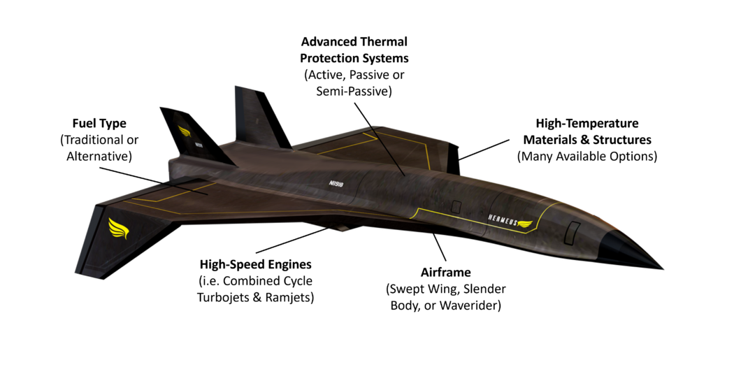 These tradeoffs listed above are indicated on a commercial hypersonic aircraft concept from Hermeus in the image below [20].