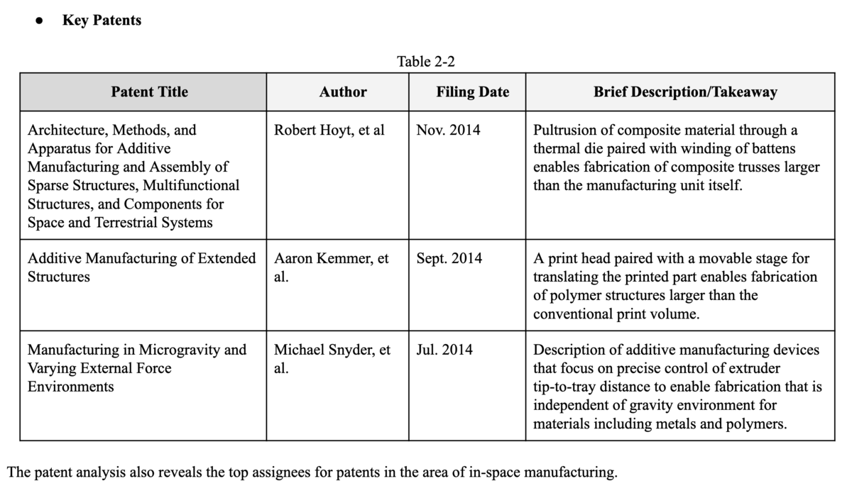 We will focus it on Additive Manufacture in the space as the main direction to search and do our paper and patent analysis