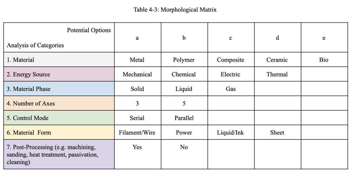 Technical Model: Morphological Matrix and Tradespace