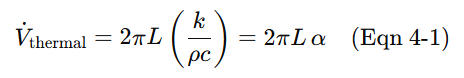 If we assume that the heating element is maintained at a temperature, Ts, that is equal to the glass transition temperature of the polymer being extruded, then the achieved rate of material extrusion, V˙thermal, can be computed as shown below, where L is the length of the heating element and α is the thermal diffusivity of the material: