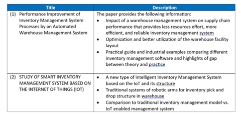 The table below show a list of FOMs by which can assess an Inventory Management System technology: