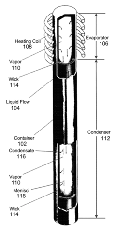 This patent is relevant because it is a key component of mobile nuclear fission reactors (see Electric Fission Reactor for Space Applications patent) for use in space. Traditional Earth-based nuclear reactors such as Pressurized Water Reactors and Boiling Water Reactors transfer heat through the transfer of fluids (water) which require pumps and gravity to assist in the process. The use of pumps in a space environment is not ideal as pumps add additional complexity to the system (and can break and therefore require maintenance) and gravity on other planetary surfaces (such as the Moon and Mars) is not as strong as that on Earth. As a result, mobile heat pipes are a key technology to the development mobile nuclear fission reactors