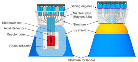 | Description | To accommodate future increases in power demand on other planets/Moons, this space reactor concept aims to provide 100-200kWe of power. It will utilize around 2 metric tons of Uranium Oxide and has the ability to self-regulate like the KRUSTY/Kilopower reactor because it is a fast neutron reactor [23] |