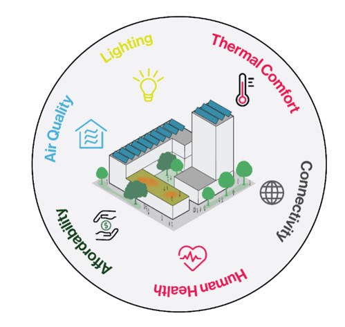 The energy required for building operation with (a.) the conditioning loads of a building that include heating, ventilation, air-conditioning (HVAC) and (b.) the internal loads of a building including appliances and electric lighting. We will combine the two and normalize by the area of the building to measure it as the Energy Use Intensity (EUI) in kWh/m2 based on the local electricity grid we can convert it into the Operational carbon in kgCO2o/m2: