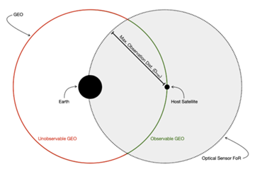 | Nominal GEO Field of Regard | # of orbital slots in view | The portion of the geostationary belt that the sensor could possibly observe (i.e. the GEO region, measured number of orbital slots) that aren't blocked by the Earth or its atmosphere from the perspective of the sensor); see Figure 4 |