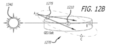 In 2018, a U.S. patent titled “Inclined Super-GEO Orbit for Improved Space-Surveillance” was issued to the Boeing Company.<ref>David R. Gerwe, et al., Inclined Super-GEO Orbit for Improved Space-Surveillance, US Patent US 9,908,640 B2, filed August 31, 2015, and issued March 6, 2018.</ref> The patent described how a satellite with non-zero inclination orbiting at an altitude greater than that of the geostationary belt could use raster scanning to observe the entire sunlit GEO environment and contribute to a broader space situational awareness mission. See Figure P1 (labeled Fig. 12B in the patent documentation) for an illustration of the patented design. Due to the orbiting altitude of the patented system, however, deploying this architecture would likely require a dedicated mission. It could not be mounted on a traditional GEO satellite, which typically has near-zero inclination and an altitude of approximately 35,780 km.